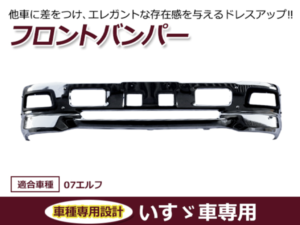 | 【適合車種】 ・メーカー:いすゞ ・車種:07エルフ ・年式:平成19年1月〜 ・材質:スチール クロムメッキ ・サイズ:幅約167.5cm / 縦約32cm ◆セット内容:・フロントバンパー本体 ※ボルト類は付属しておりません ※車体に合わせて必要な部品はご用意ください |