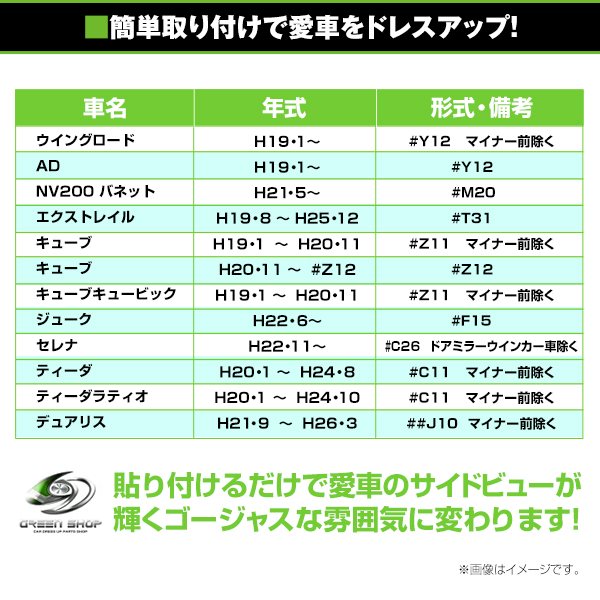 | 【適合車種】 ・メーカー:日産 スズキ 三菱 ・参考適合車種:ウイングロード H19.1〜 #Y12 マイナー前除く AD H19.1〜 #Y12 NV200 バネット H21.5〜 #M20 エクストレイル H19.8〜H25.12 #T31 キューブ H19.1〜H20.11 #Z11 マイナー前除く キューブ H20.11〜 #Z12 キューブキュービック H19.1〜H20.11 #Z11 マイナー前除く ジューク H22.6〜 #F15 セレナ H22.11〜 #C26 ドアミラーウインカー車除く ティーダ H20.1〜H24.8 #C11 マイナー前除く ティーダラティオ H20.1〜H24.10 #C11 マイナー前除く デュアリス H21.9〜H26.3 ##J10 マイナー前除く ノート H20.1〜H24.8 #E11 マイナー前除く ノート H24.8〜 #E12 マーチ H19.6〜H22.6 #K12 マイナー前除く マーチ H22.7〜 #K13 ラティオ H24.10〜 N17 ラフェスタ H19.5〜H24.12 #B30 H23.6〜ハイウェイスター除く リーフ H22.12〜 ZEO ランディ H22.12〜 #C26 ドアミラーウインカー車除く デリカD:3 H23.10〜 BM20 デリカバン H23.10〜 BVM20 ◆セット内容:左右セット |