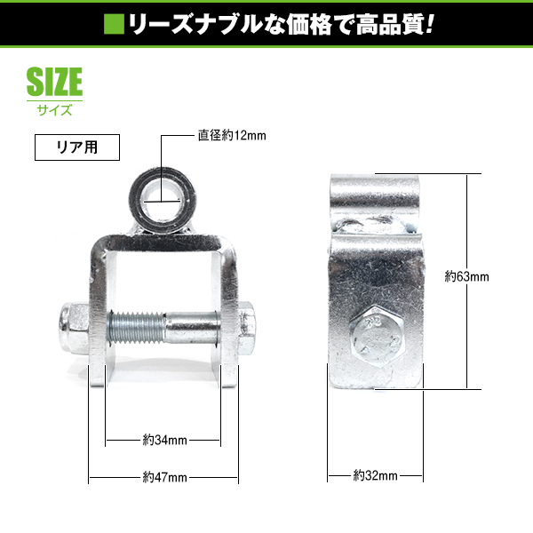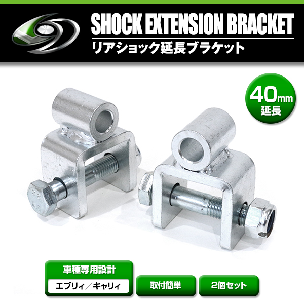 | 【商品説明】 リアショックアブソーバーを延長するためのブラケットです。 エブリィは上部マウントに、キャリィはリアショックアブソーバー下部に 装着することで40ミリ分の長さ不足を補う事が可能! |