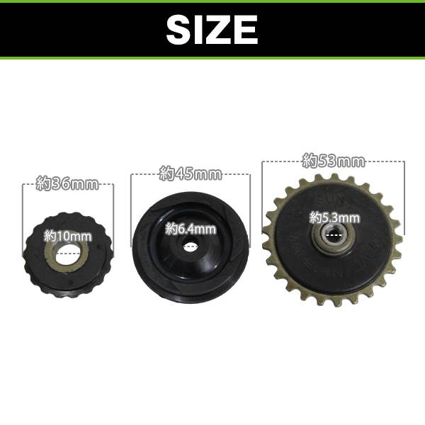 | 【商品詳細】 ・仕様:【適合】 6V/12V横型エンジン 50cc/72(70)cc/85(90)cc 【商品詳細】 カムチェーンガイドローラー×1 テンショナーローラー×1 スプロケット(25T)×1 ・サイズ:画像をご確認ください |