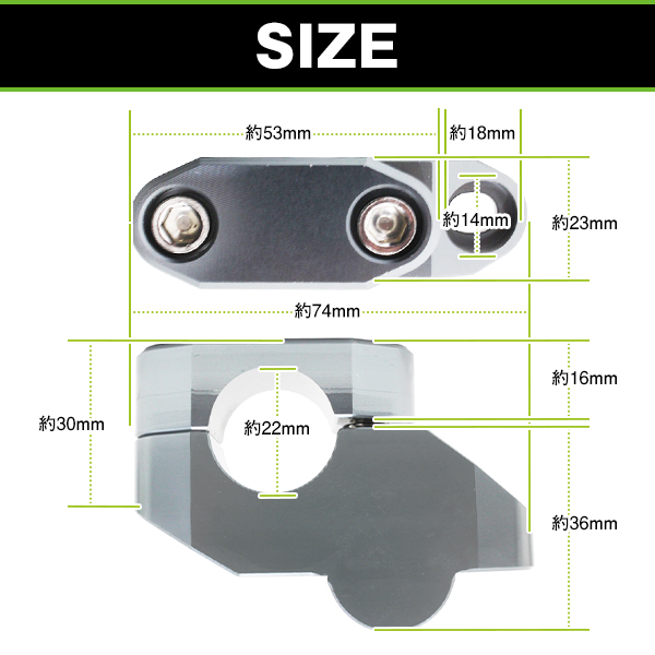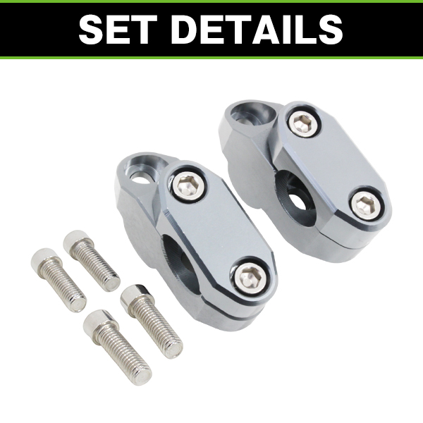 | 【商品詳細】 ・仕様: 材質:高密度アルミ合金 対応ハンドル径:約22.2mm カラー:チタングレー セット内容:ハンドルアップスペーサーx2 / ビスx4 |
