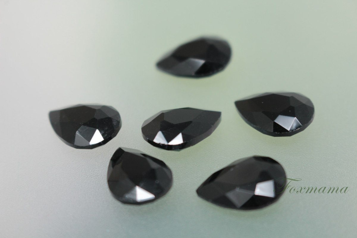 ビジュー 6個 クリスタルガラス 雫 水滴 14x10mm 黒 (JDP14GBKHYHU)