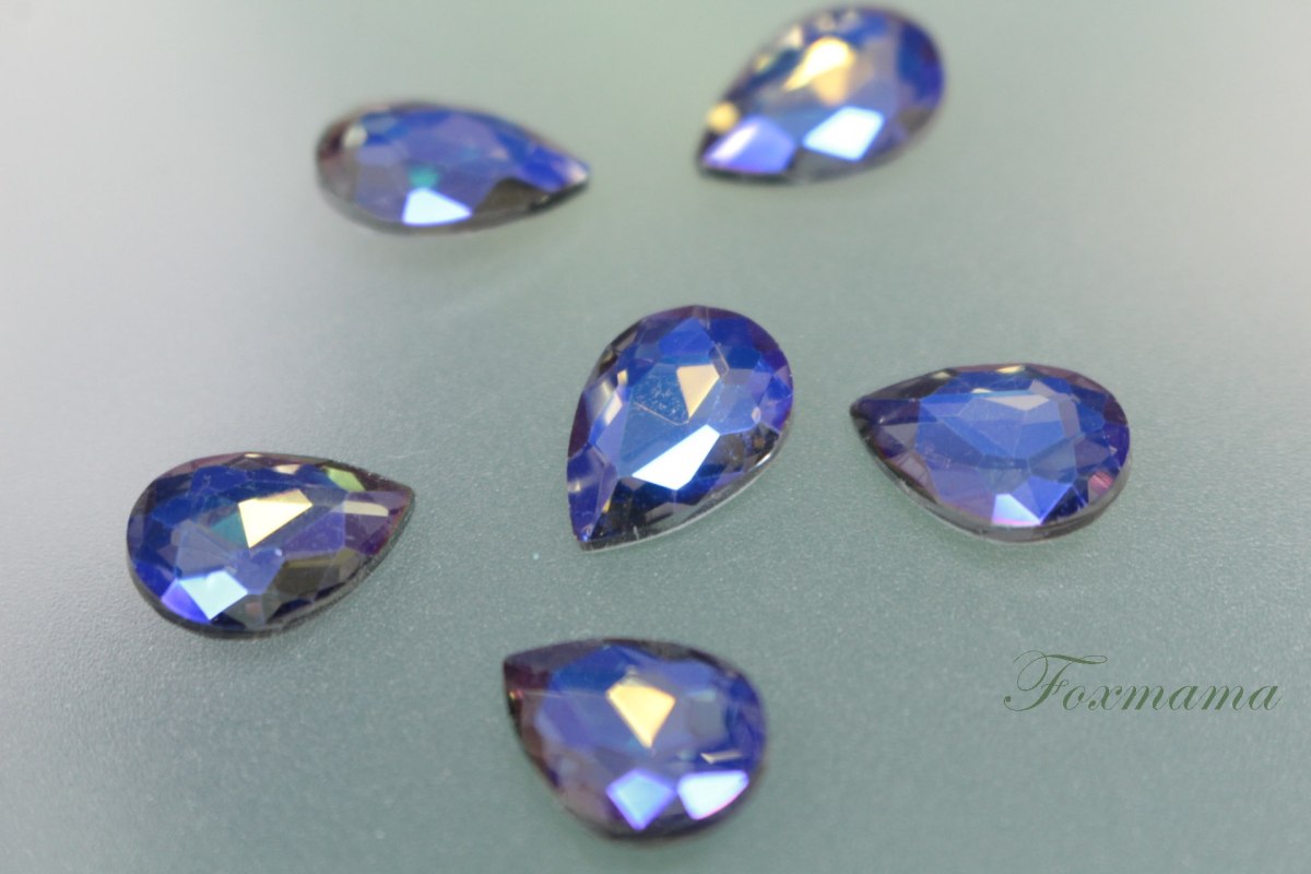 ビジュー 6個 クリスタルガラス 雫 水滴 14x10mm オーロラブルー 青 (JDP14GBLHYHU)