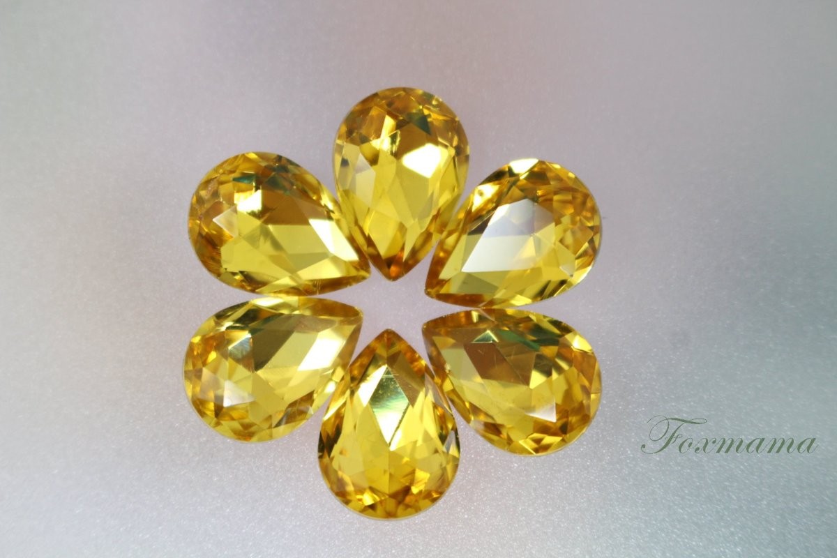 ビジュー 6個 クリスタルガラス 雫 水滴 14x10mm 黄色 イエロー (JDP14GYLJJHU)