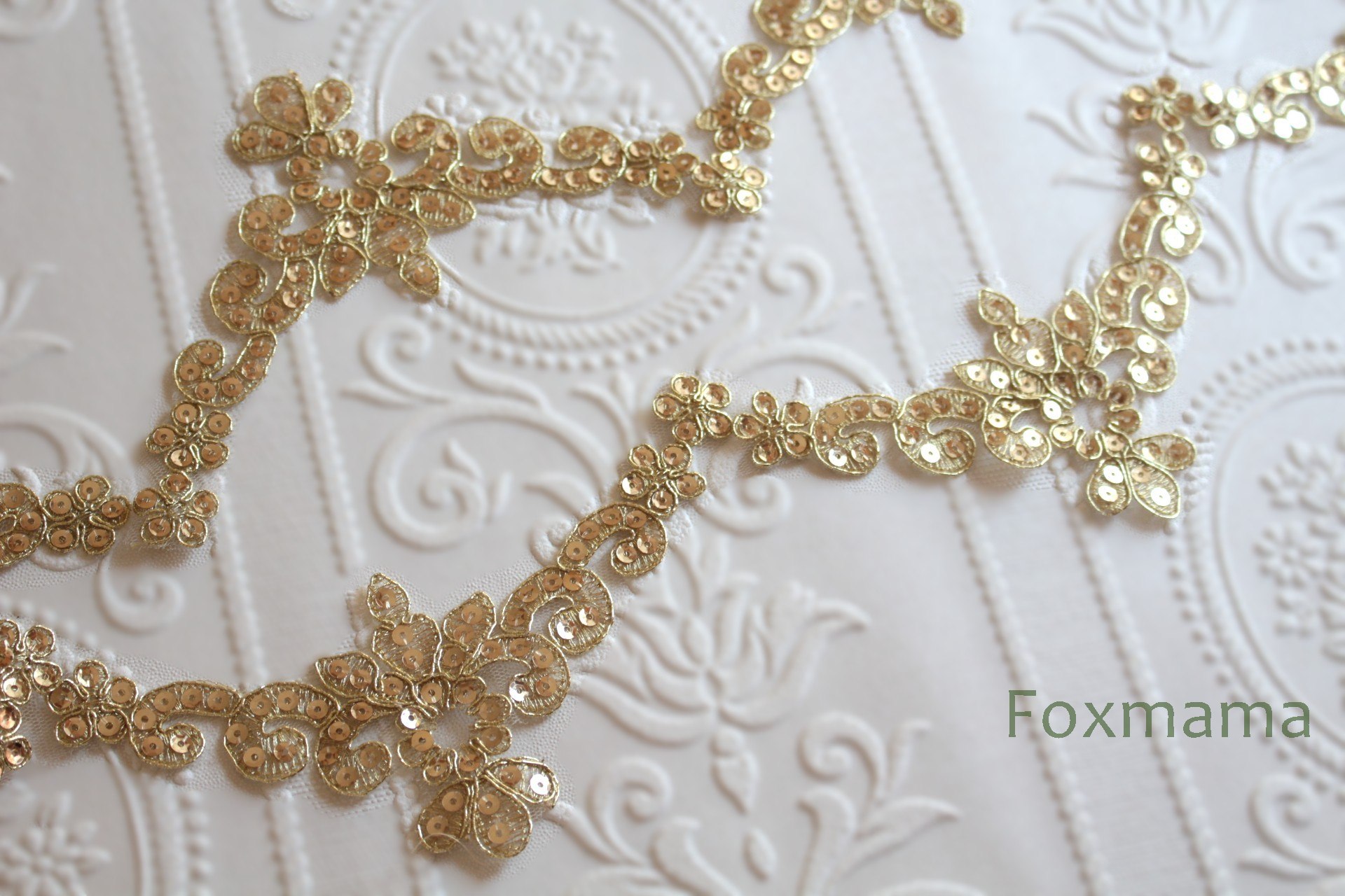 チュールコード刺繍ブレード 1m 花 スパンコール付 金色 (KFL752GLWWSP)