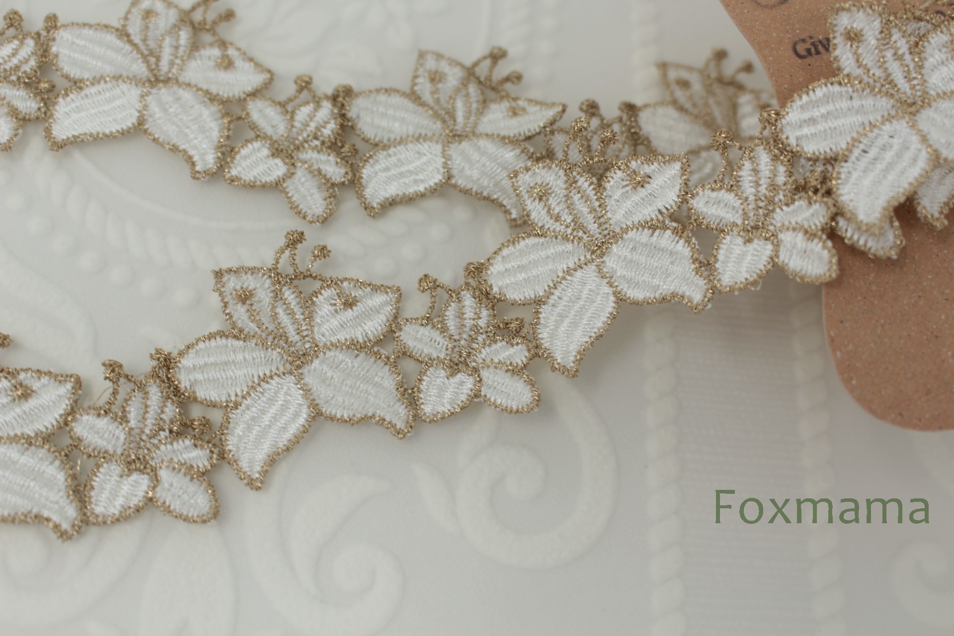 ケミカルレース 0.5m 花 オフ白×金色ラメ糸 (LFL401GLEHLM)