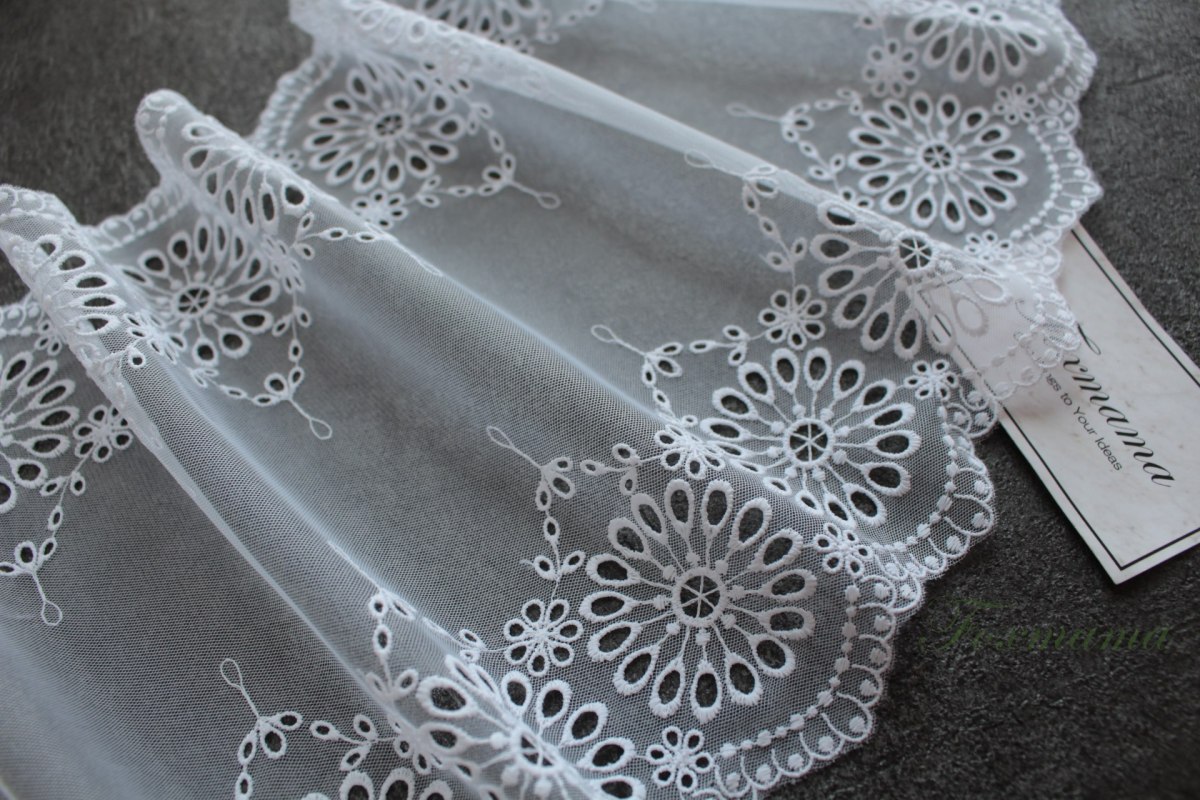 チュール幅広レース 0.5m 両山スカラップ 花 白 (LFLB22WHHWRY)