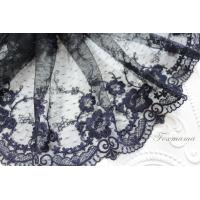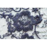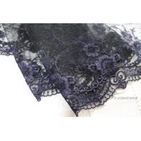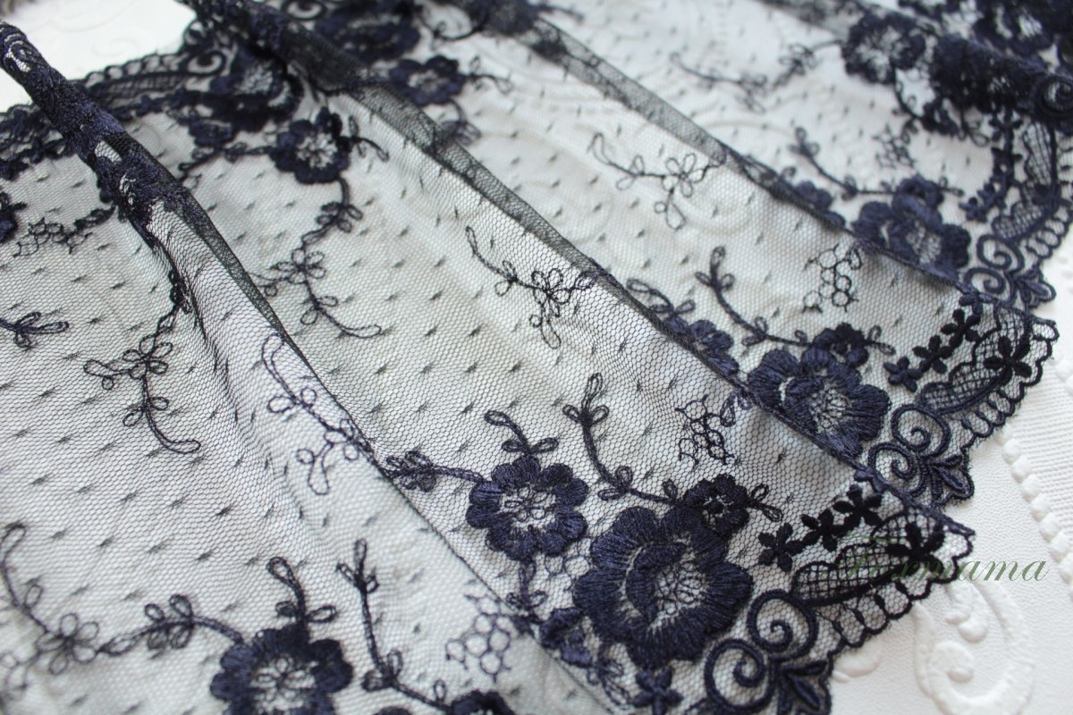 チュール幅広レース 0.5m 花 両山 黒チュールx紫味のあるネイビー (LFLB62NVHLRY)