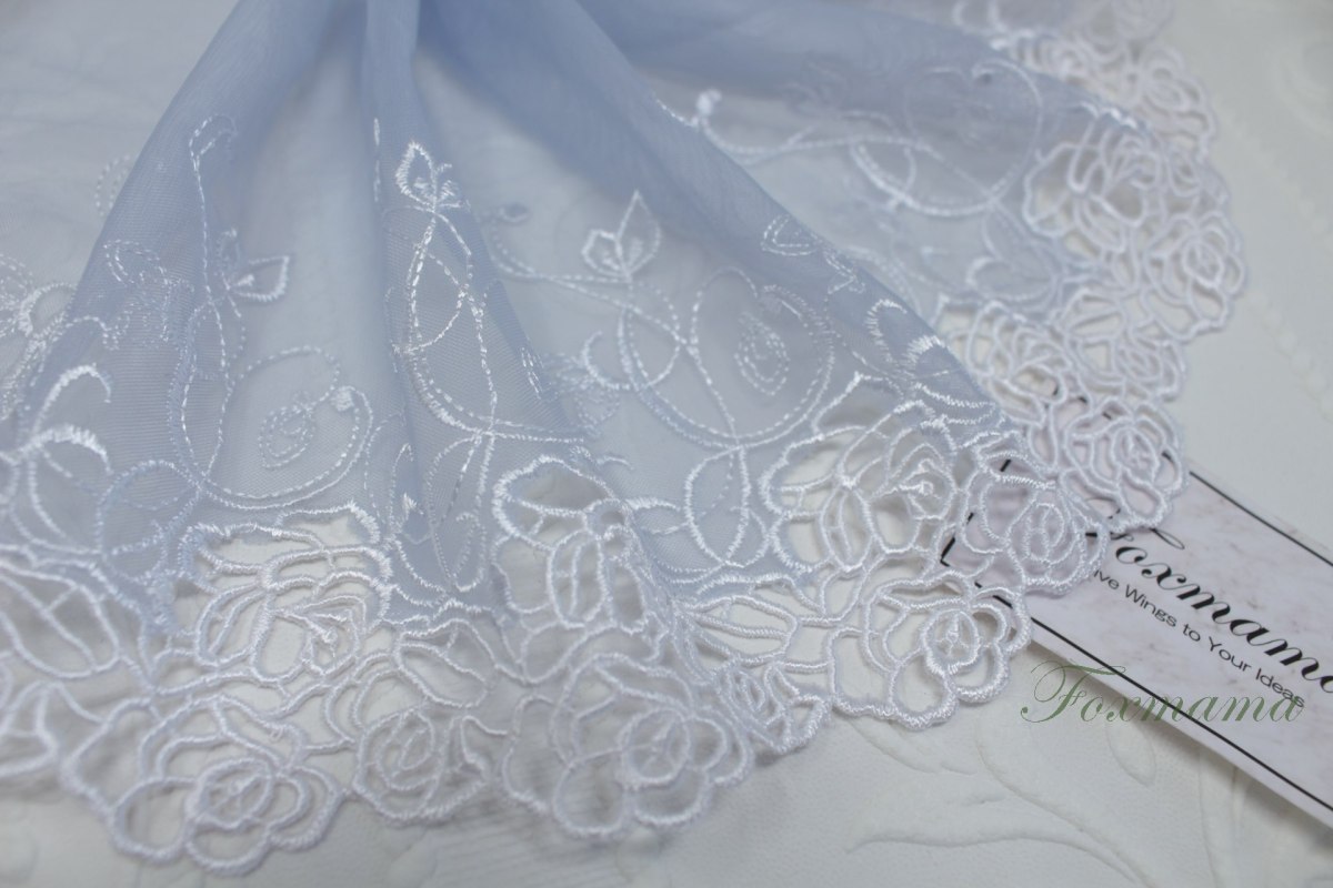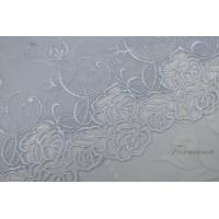 チュールケミカル刺繍レース 0.5m バラ 花 片山 白刺繍 (LRSA72WHHLKY)