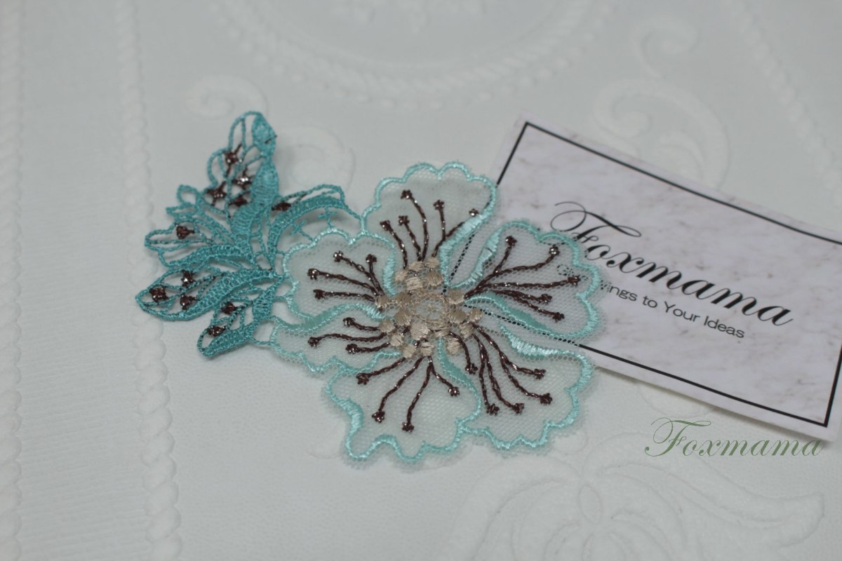 ケミカルチュールレースモチーフ 2枚 花 Aタイプ 青緑 (MFL931GBHW0A)