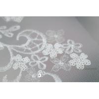 チュール刺繍モチーフ 1枚 花 スパンコール付 オフ白 (MFLB72KNHYSP)