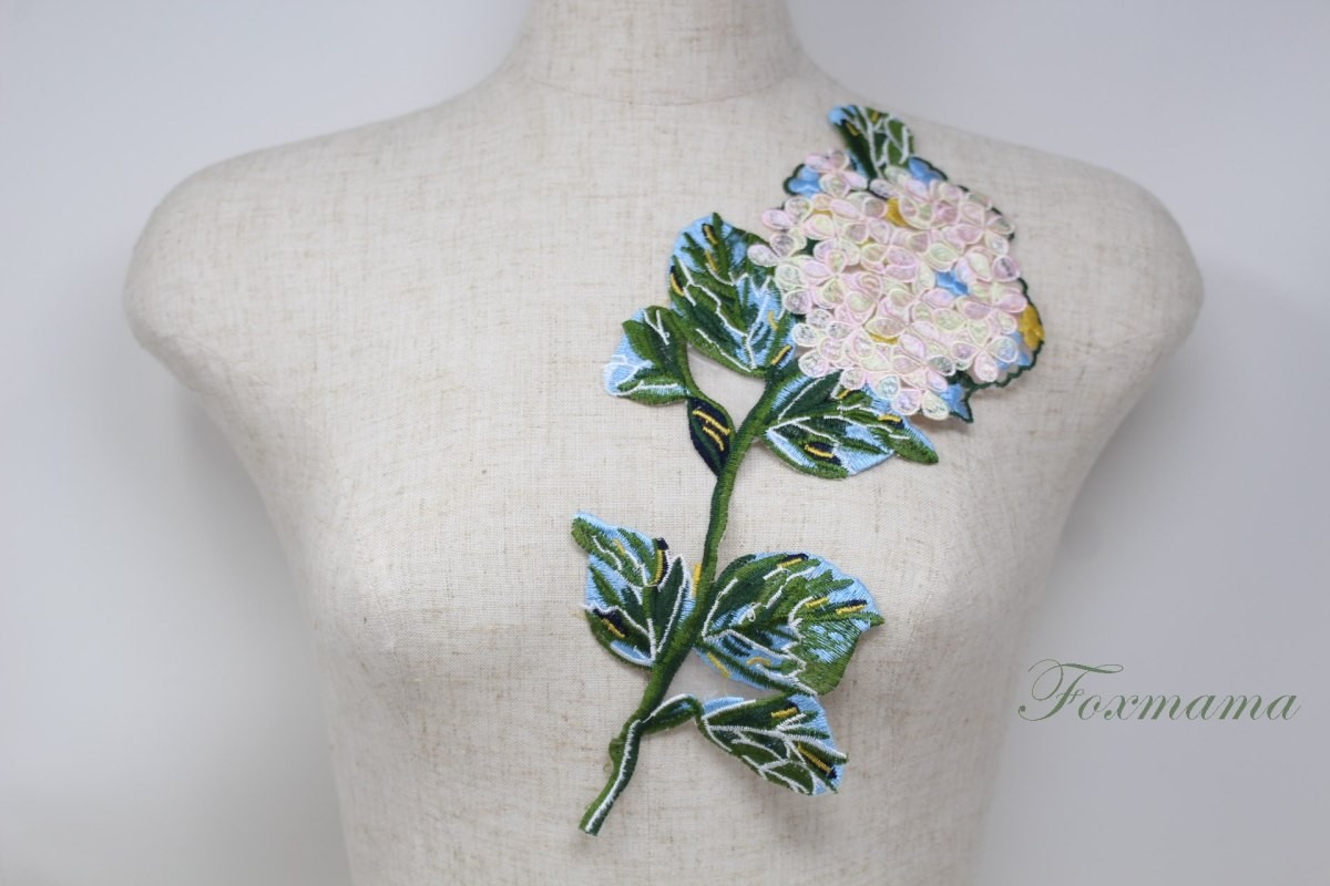 オーガンジー刺繍モチーフ 1枚 花 葉っぱ ピンク系 (MFLB83PKJH00)