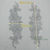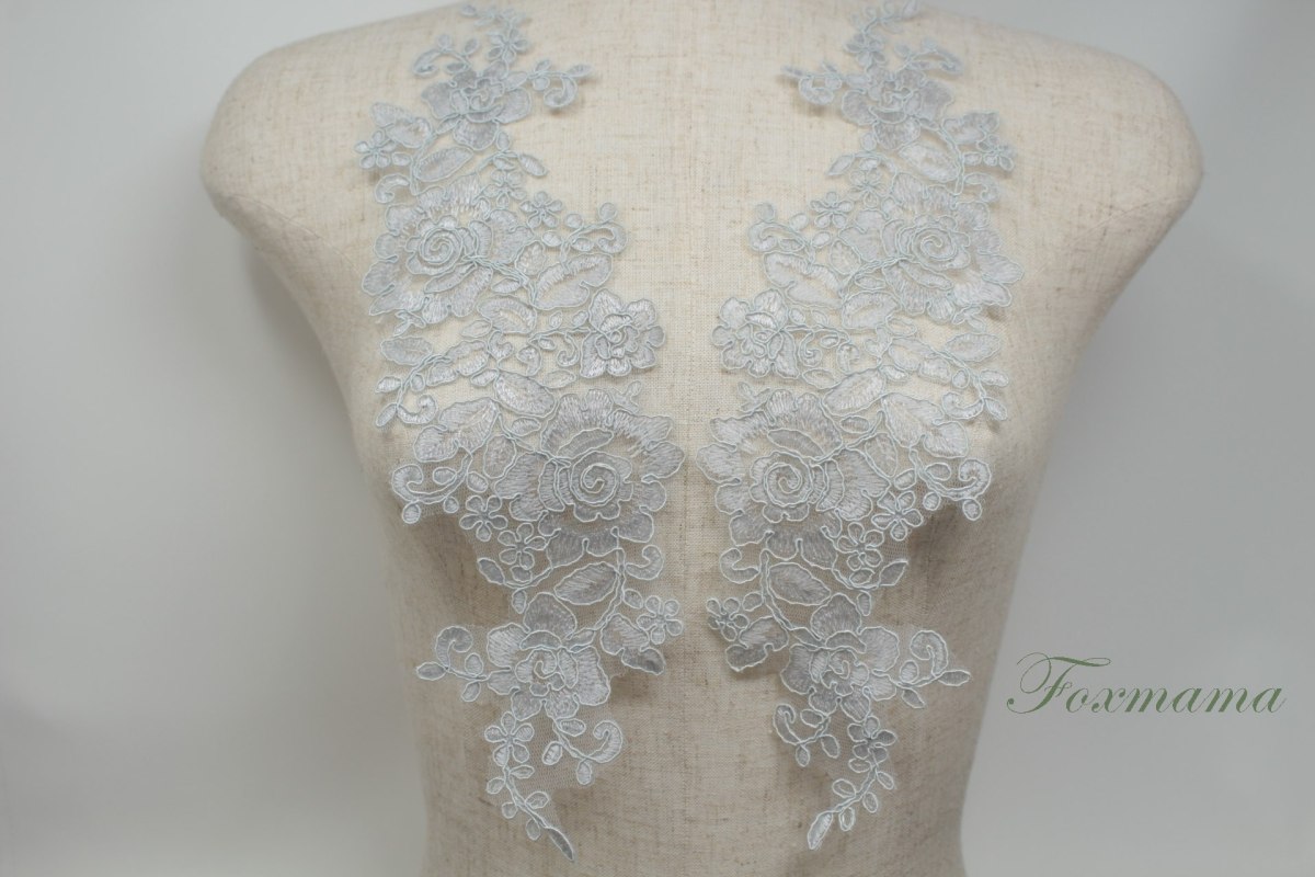 チュールコード刺繍モチーフ 1対 花 グレー (MFLC32GYHLJL)