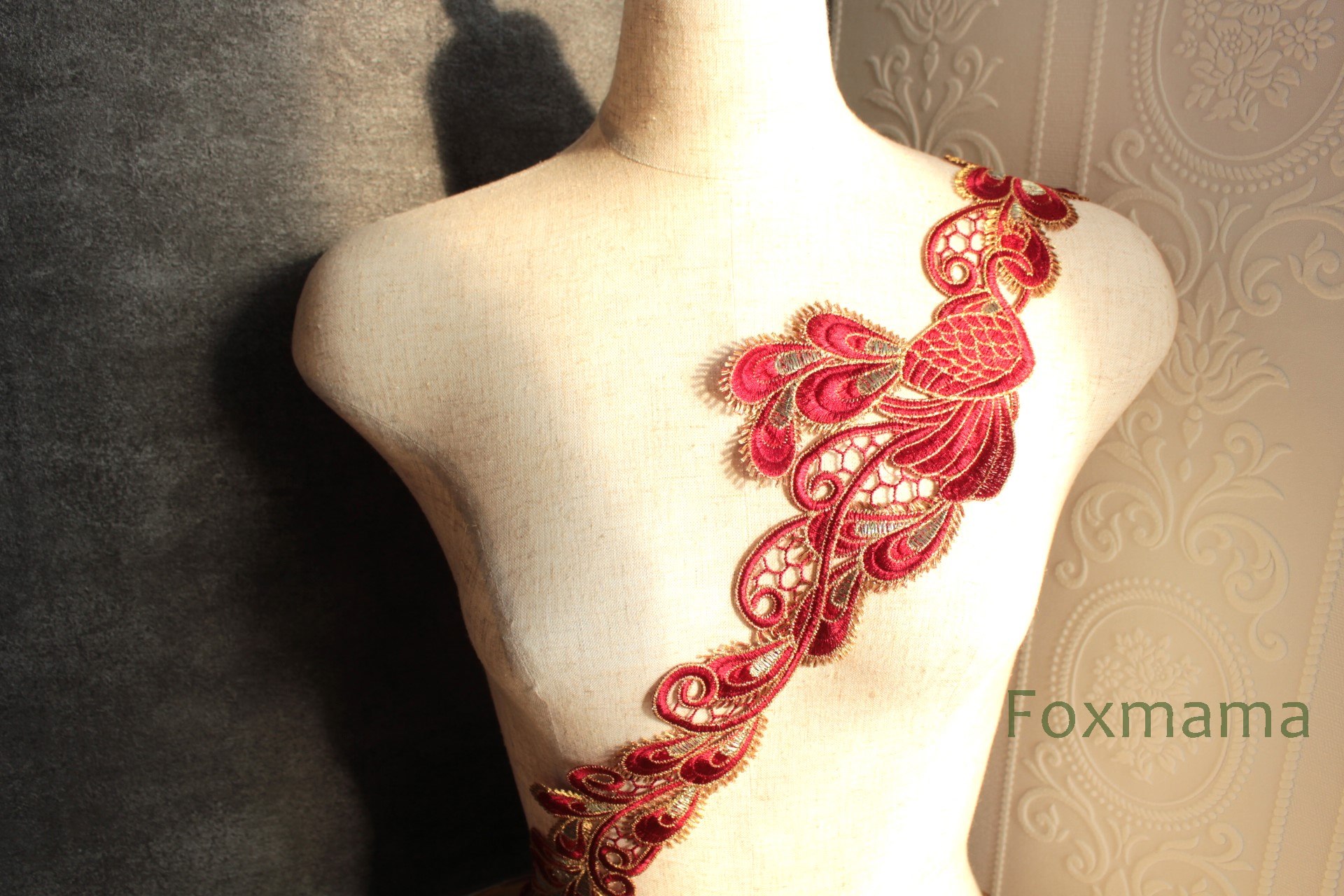 ケミカルレースモチーフ 1枚 孔雀 Bタイプ 赤×金ラメ糸 (MPC0L1RDJL0B)