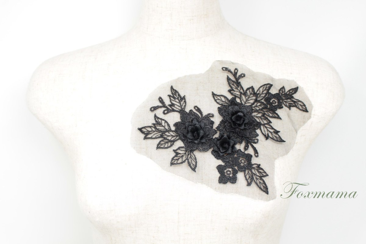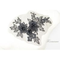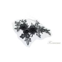 チュール刺繍花びら立体モチーフ 黒A 1枚 (MTHA92BKBH0A)