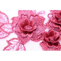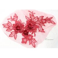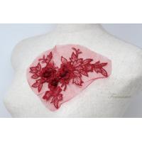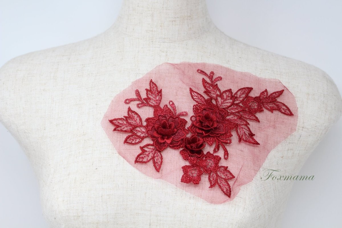 チュール刺繍花びら立体モチーフ えんじ色xえんじラメ タイプA 1枚(MTHA92EJJQ0A)