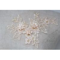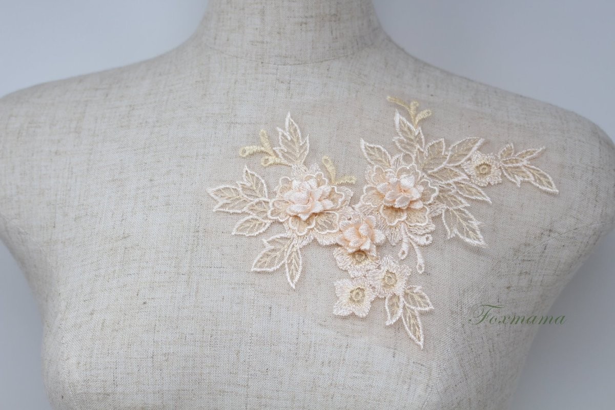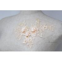チュール刺繍花びら立体モチーフ 薄オレンジ タイプA 1枚(MTHA92FOJQ0A)