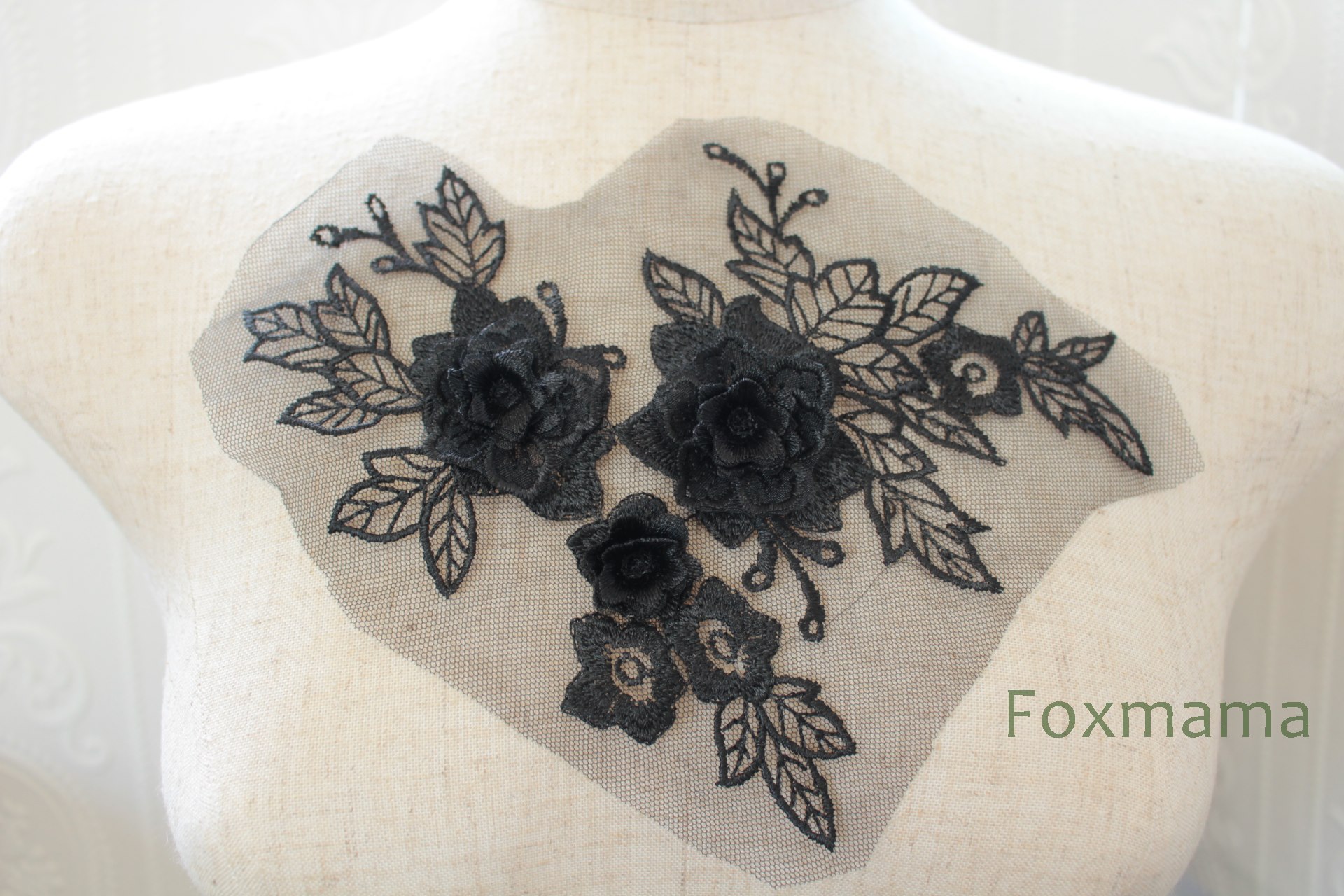 チュール刺繍花びら立体モチーフ 1枚 黒色 Aタイプ (MTHB02BKFO0A)
