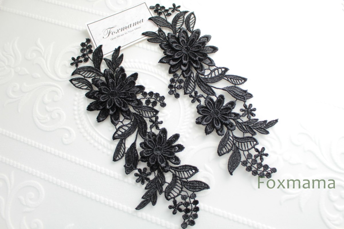 ケミカルレースモチーフ 1対 立体花 黒 (MTHB41BKHDJL)