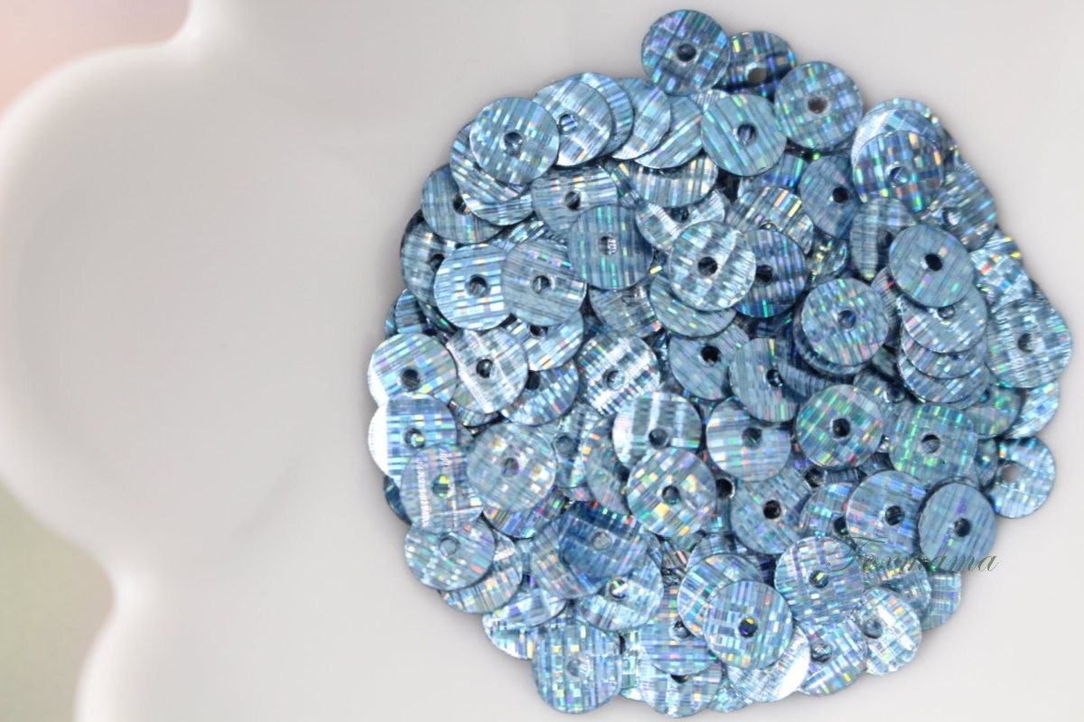 スパンコール 約360個(約2g) 丸 5mm レーザー ストライプ 水色 (SCC05ZWTJHST)