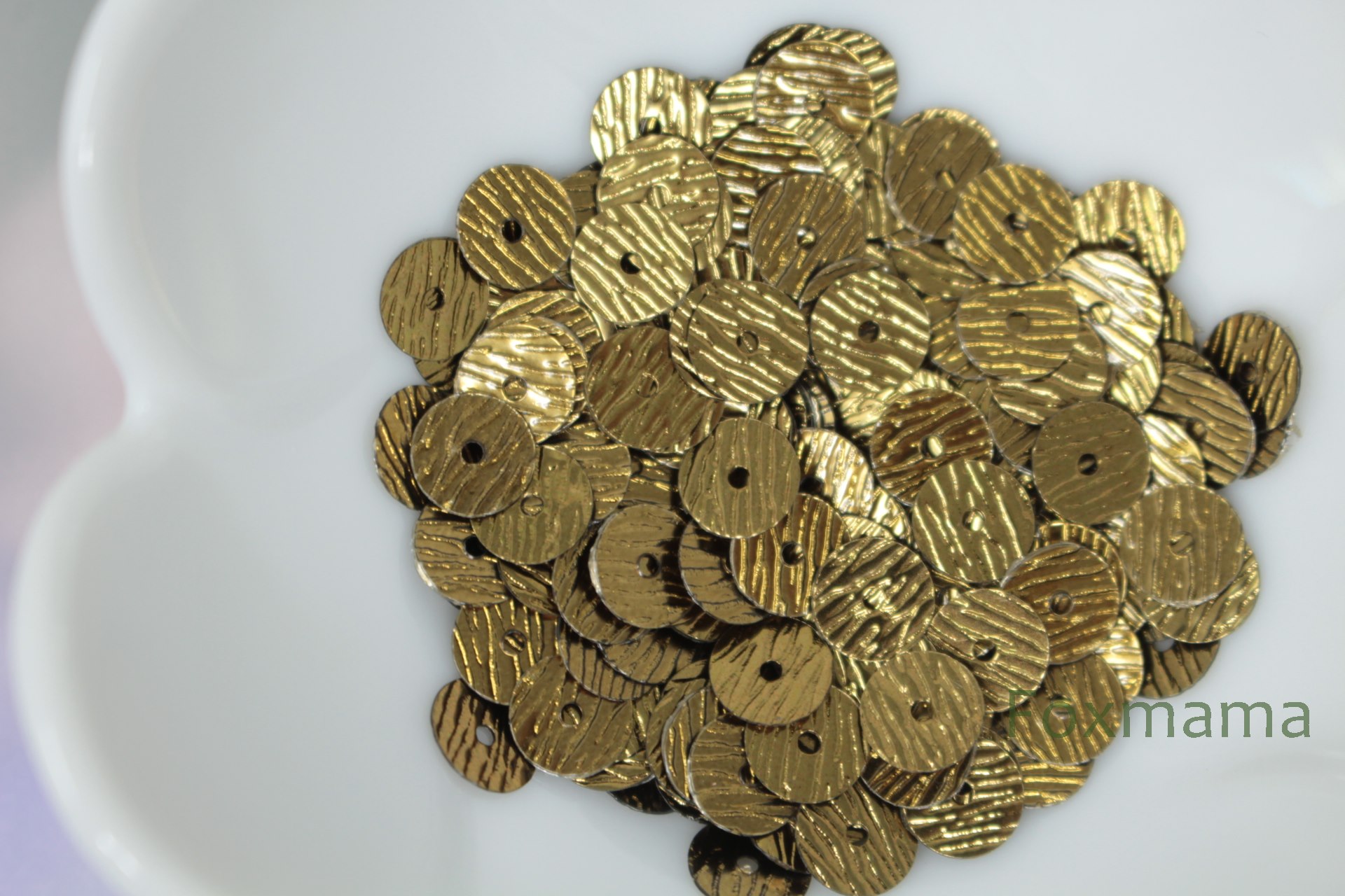 スパンコール 6mm 約300枚(約2.5g) 丸 メタリック 木目型押し 金色系 (SCC06TGLHLKW)