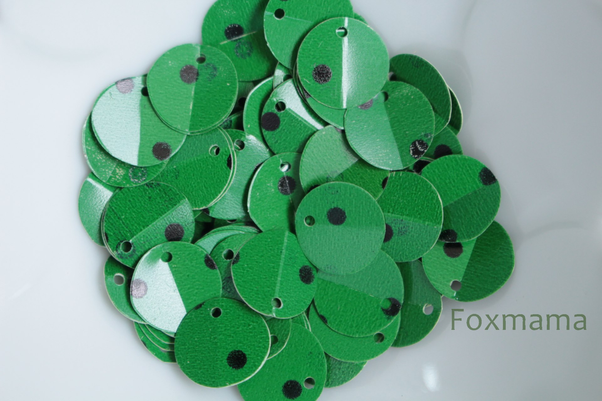 スパンコール 約90枚(約2.5g)丸 トップホールドットプリント 10mm 折れ 緑 (SCC100GRGAFD)