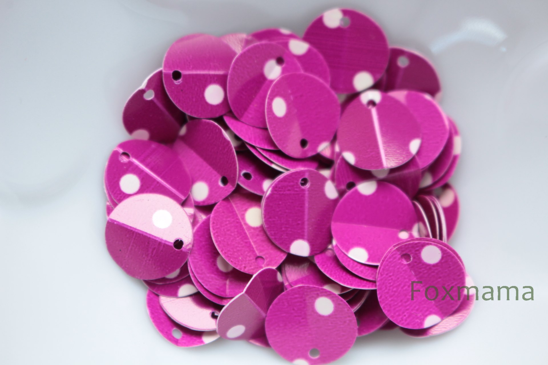 スパンコール 約90枚(約2.5g)丸 トップホールドットプリント 10mm 折れ 赤紫 (SCC100RMGAFD)