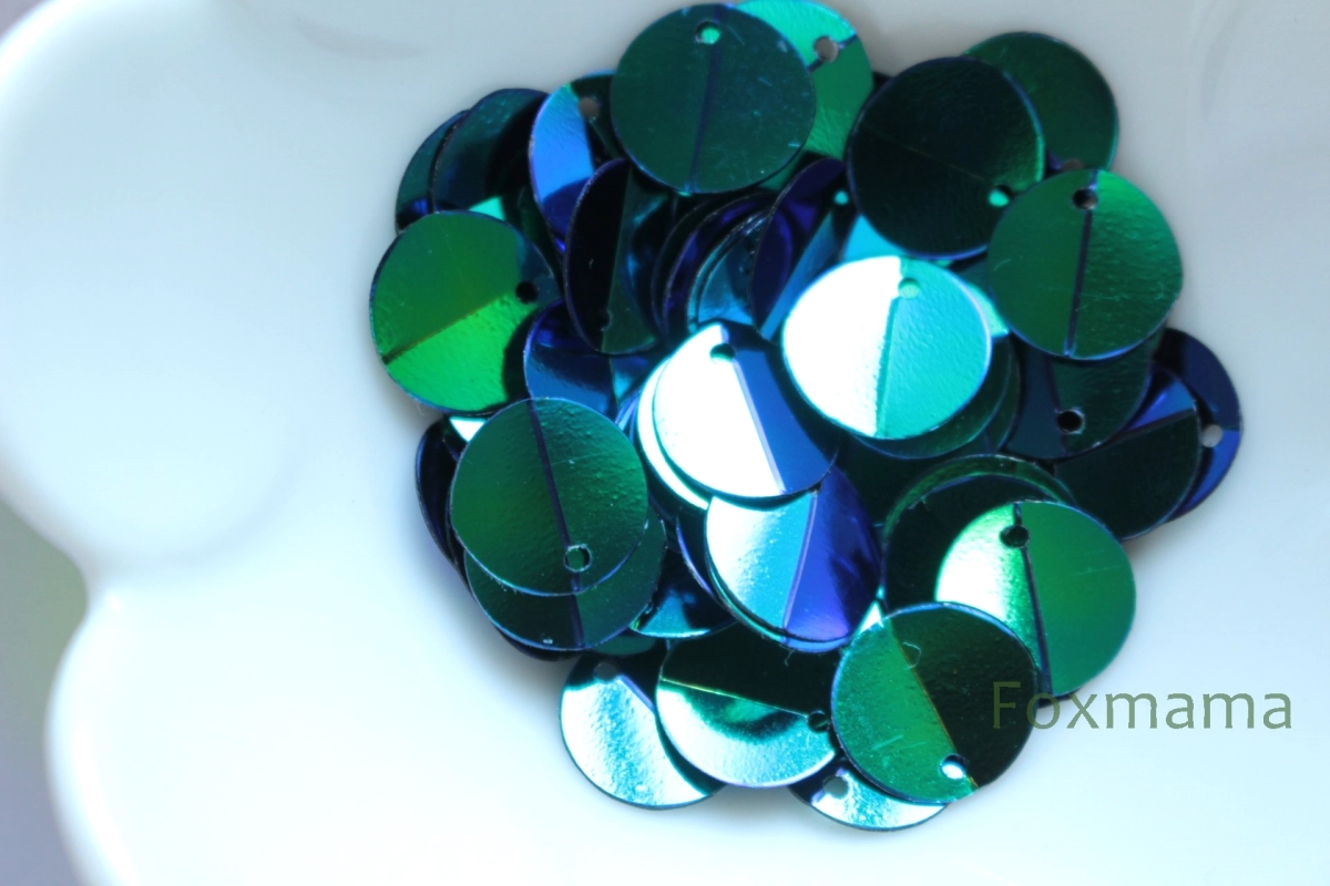 スパンコール 10mm 約80枚(約2.5g) 丸 中折 トップホール オーロラ 青緑 (SCC10AGBESFD)