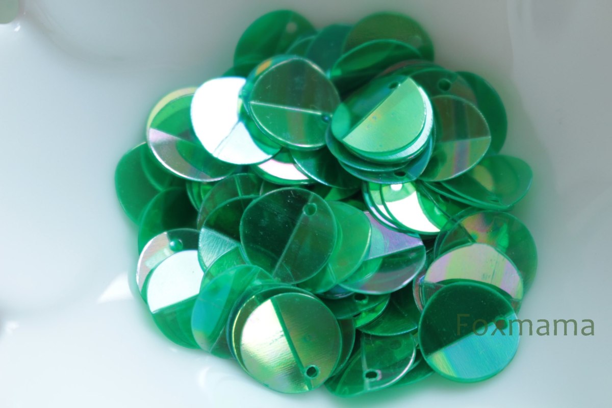 スパンコール 10mm 約90枚(約2.5g) 丸 中折 トップホール オーロラ 緑(SCC10AGRESFD)