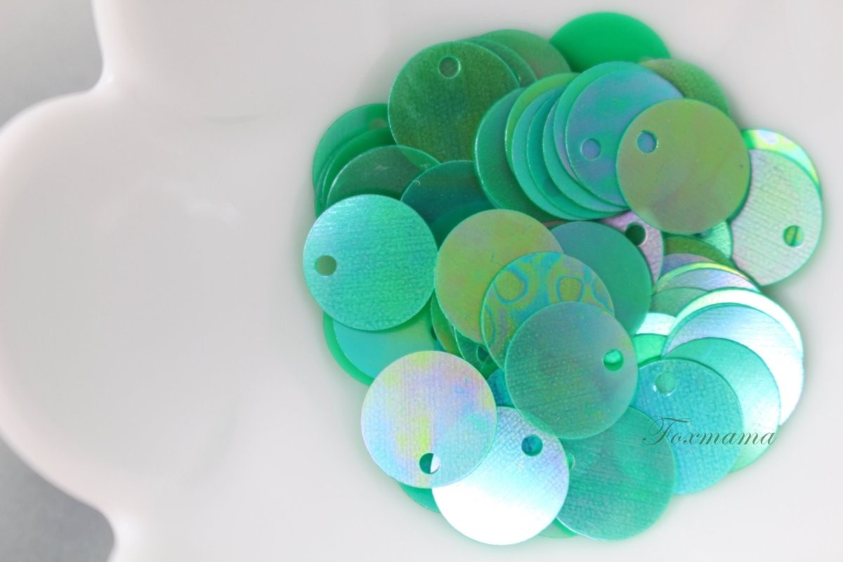 スパンコール 約70枚(約2g) トップホール 丸10mm 半透明 オーロラ緑(SCC10AGRJQTH)