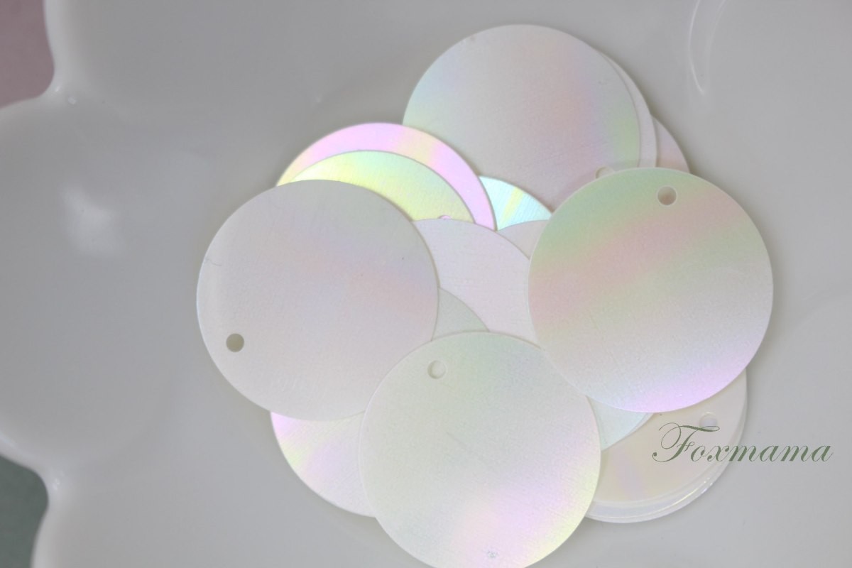 スパンコール 約28枚(約3g) 丸 約20mm トップホール オーロラ 乳白 (SCC20AMWJQTH)