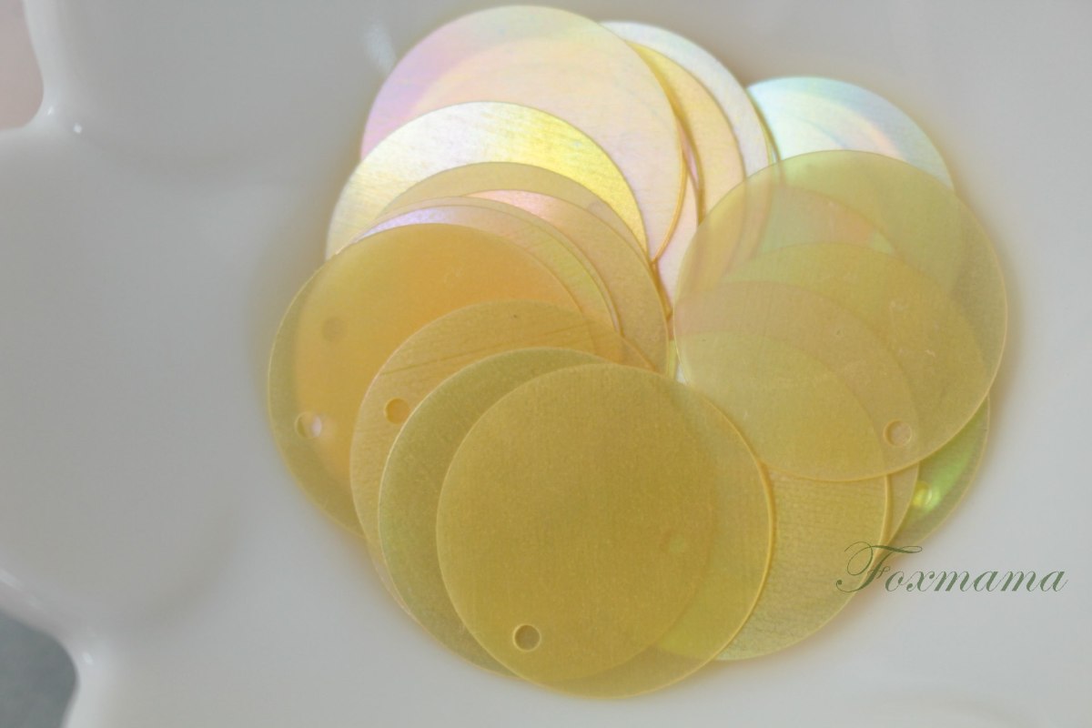 スパンコール 20mm 約28枚(約3g) 丸 トップホール オーロラ 黄 (SCC20AYLHYTH)