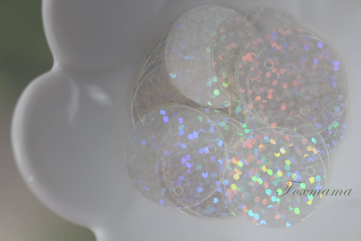 スパンコール 約25枚(約3g) 丸 20mm トップホール ホログラム 透明 (SCC20HSKJJTH)