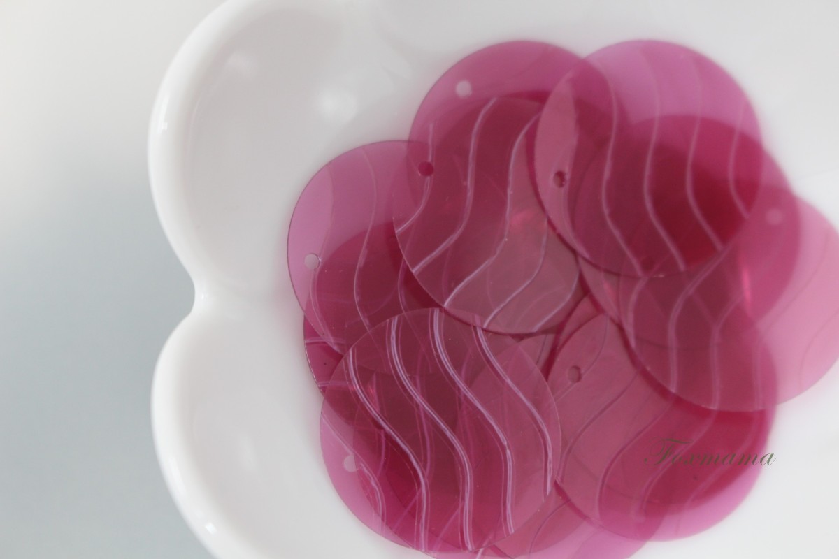 スパンコール 約20枚(約3g) 丸波型押し 21mm トップホール 半透明赤紫(SCC21BRMJLWV)