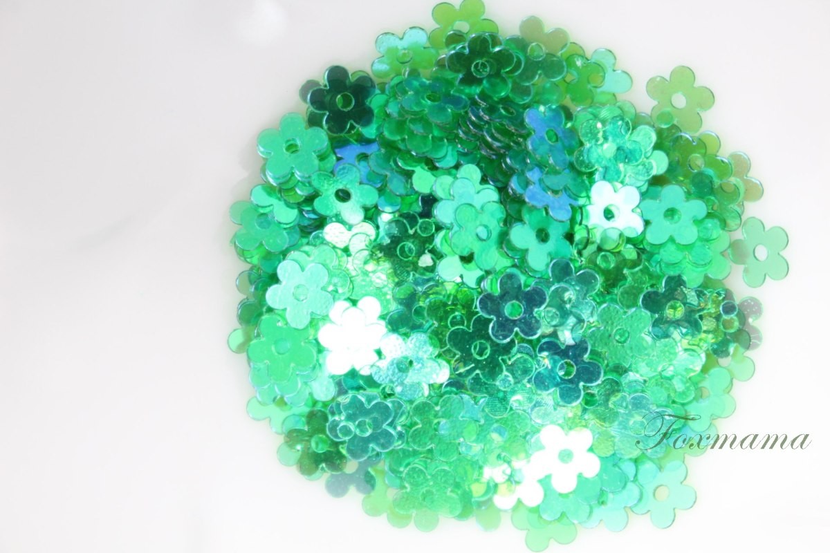 スパンコール 約350枚(約2g) 5mm 5枚花びら 半透明 緑 (SF505BGRSE00)
