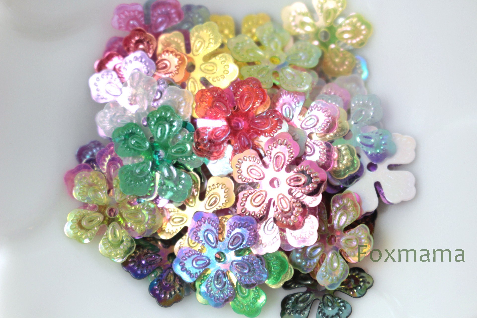 スパンコール 13mm 約70枚(約2.5g) 5枚花びら オーロラ 型押し 混色 (SF513AMXGAK1)