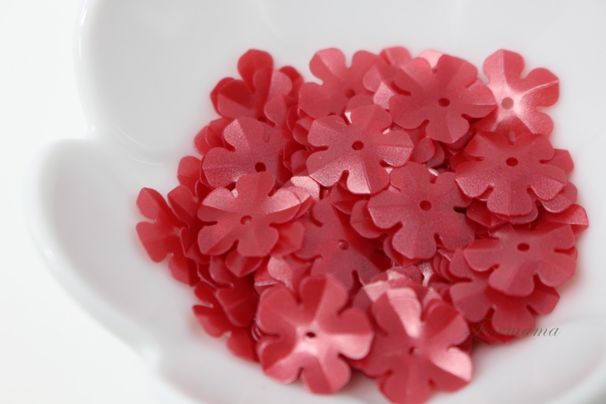 スパンコール 約3.8g分(約80枚) 5枚花びら14mm マット半透明赤(SF514MRDBJHS)