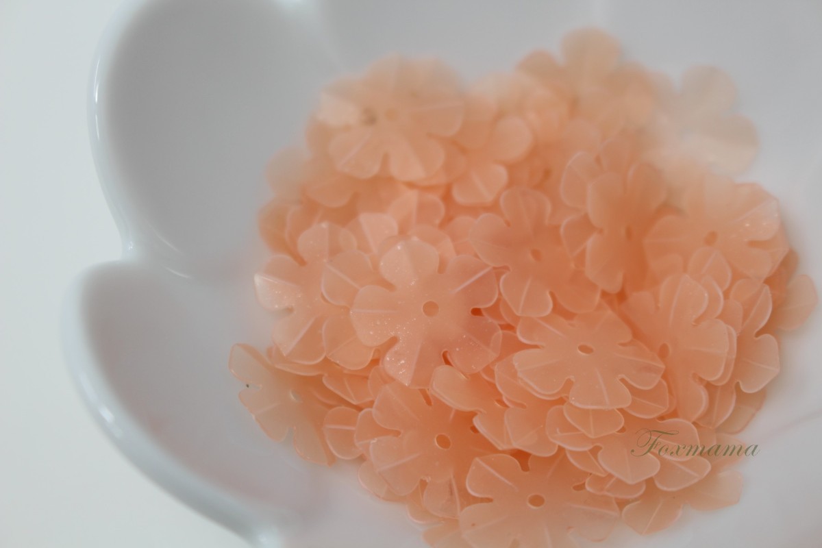 スパンコール 約3.8g分(約80枚) 5枚花びら14mm マット半透明サーモンピンク(SF514MSPBJHS)