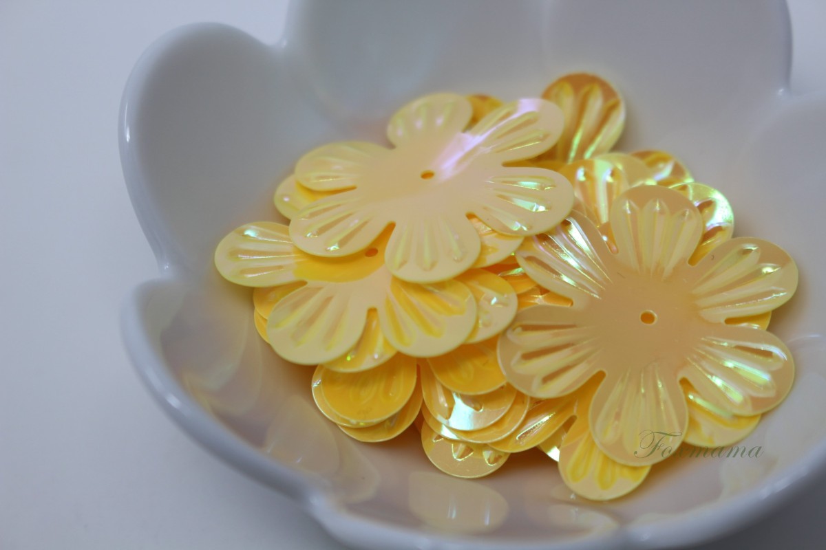 スパンコール 15枚 6枚花びら 32mm オーロラ黄色(SF632AYLBJ00)