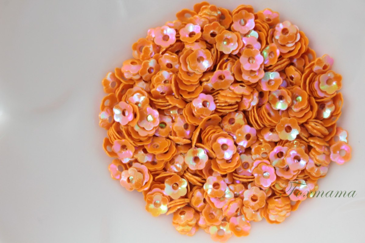 スパンコール 4mm 約620枚(約2.5g) 花カップ オーロラ オレンジ (SFC04AOGSJ00)