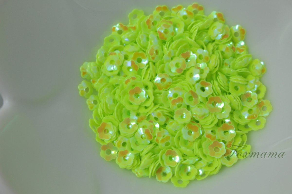 スパンコール 4mm 約620枚(約2.5g) 花カップ オーロラ 蛍光黄緑 (SFC04AYGSJ00)
