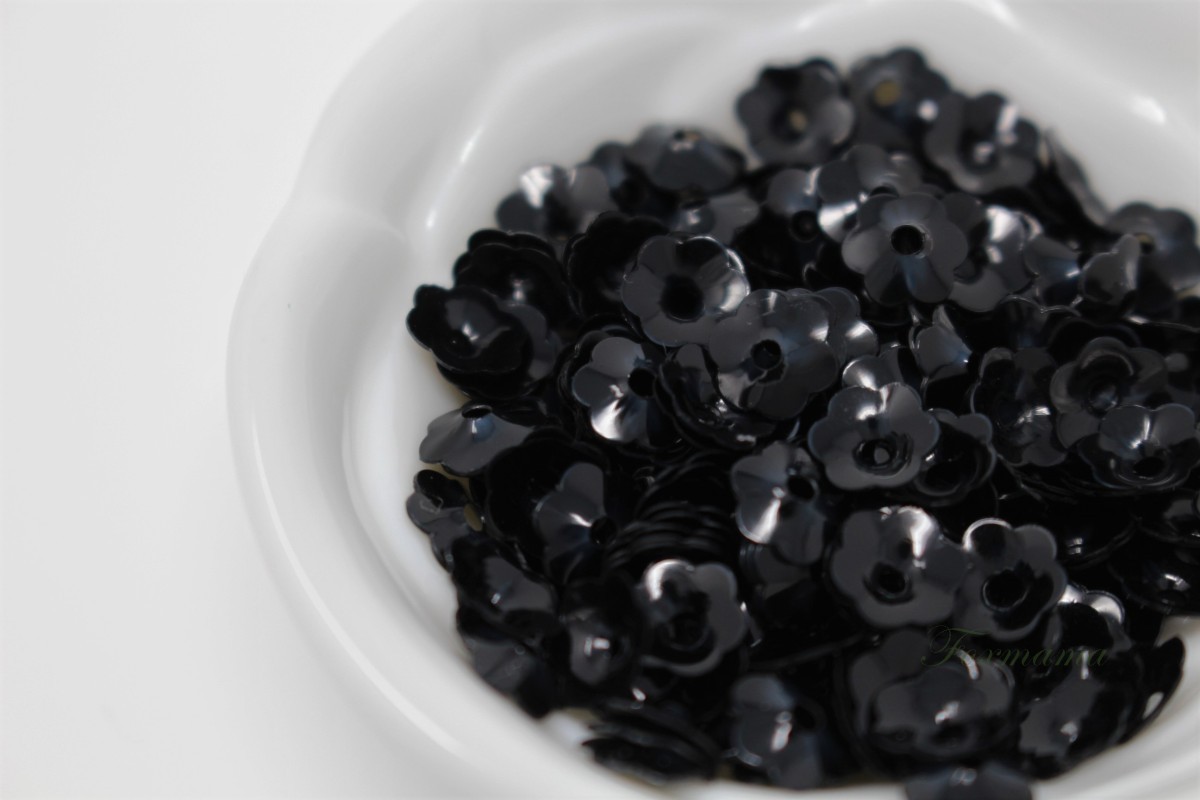 スパンコール 約260枚(約3.5g)花カップ 7mm 黒 (SFC070BKBS00)