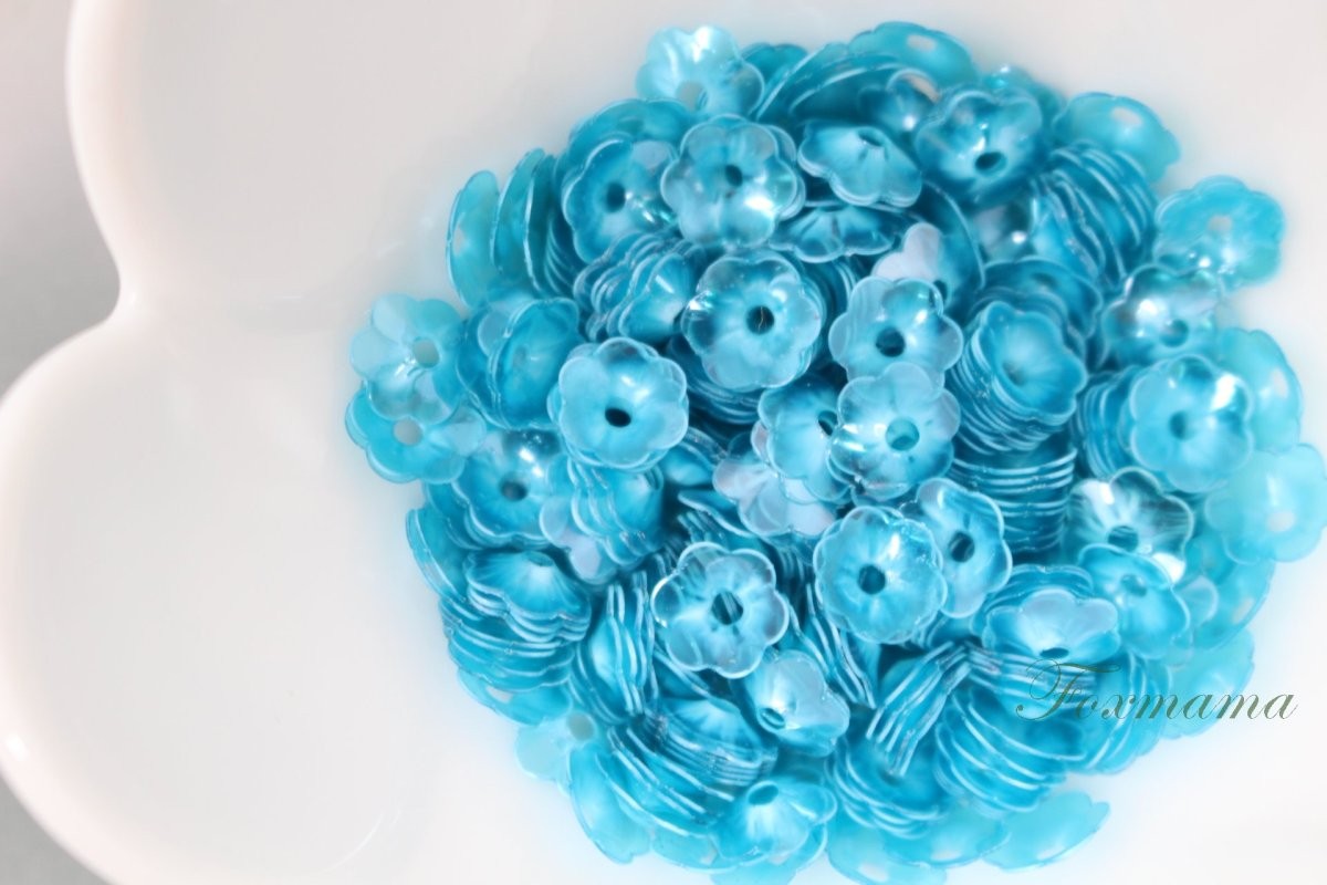 スパンコール 約300枚(約3.5g)花カップ 7mm 半透明青 (SFC07BBLJB00)
