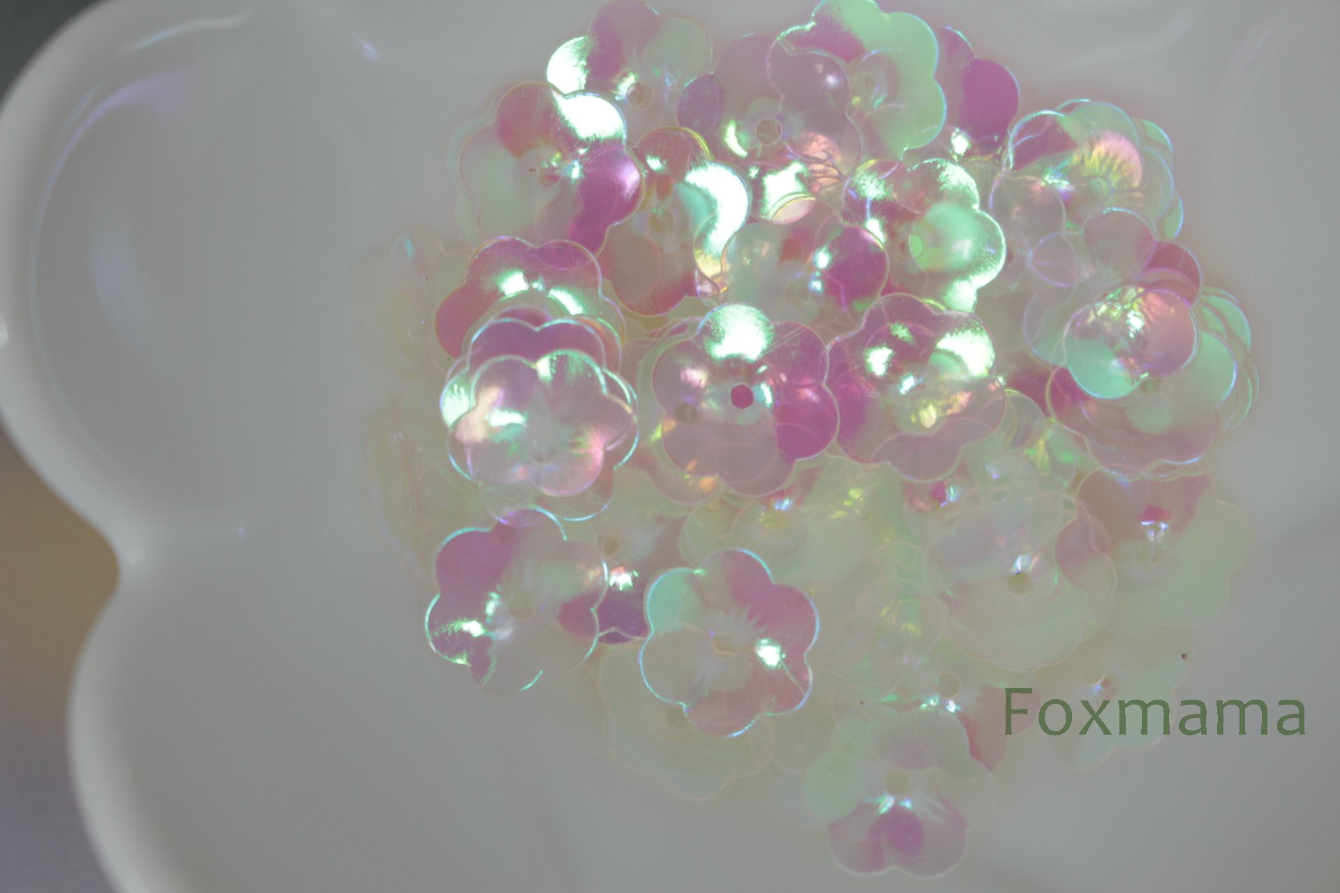 スパンコール 10mm 約80枚(約2.5g) 花カップ ネモフィラ オーロラ 半透明白 (SFC10AWHESHS)