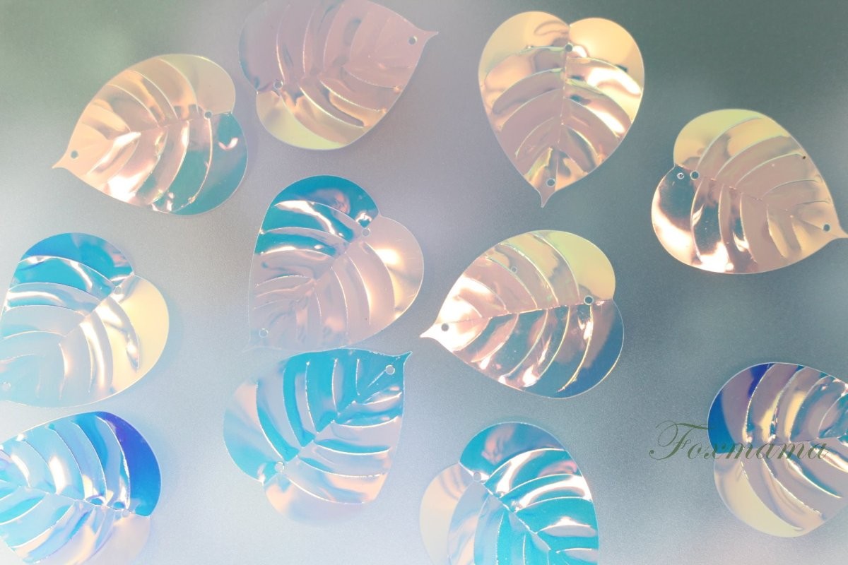 スパンコール 10枚 葉 オーロラ 透明 クリア(SLF33ASKJJH2)