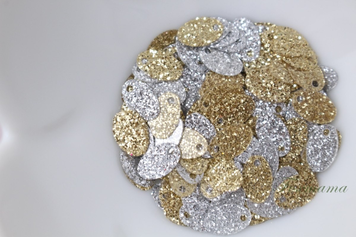 スパンコール 約190枚(約2g) 楕円 8x5mm ラメ 金銀混色 トップホール (SOV08LK1SEMX)