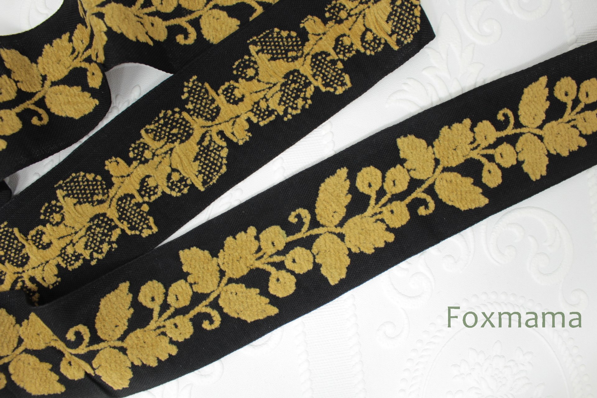 【セール品】モール糸刺繍テープ 1m 葉 黒色テープ×黄土色系刺繍 (TLF650BKSH00)