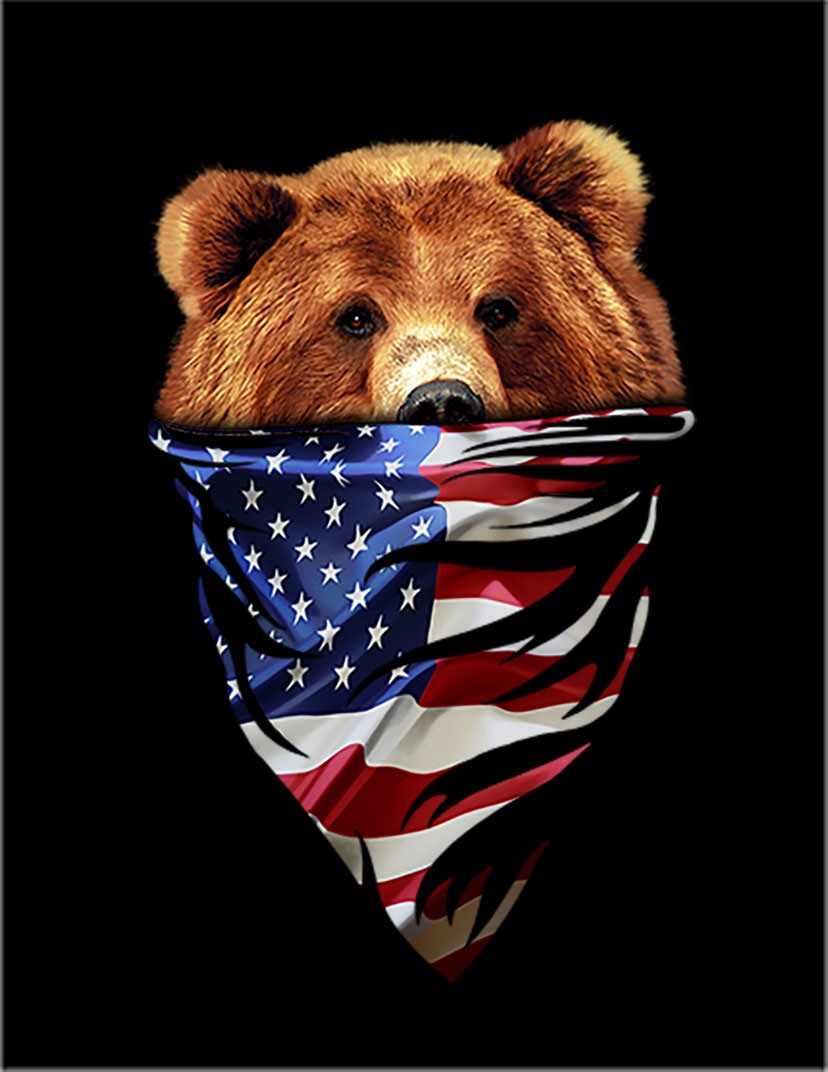 【グリズリーベア・熊・クマ・星条旗・アメリカ】ポストカード 黒背景