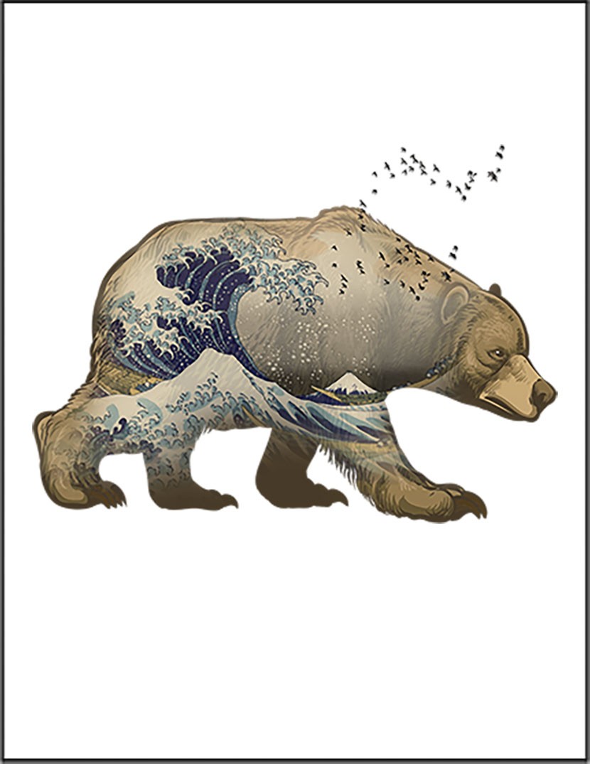 【グリズリーベア・クマ・熊・海・波】ポストカード