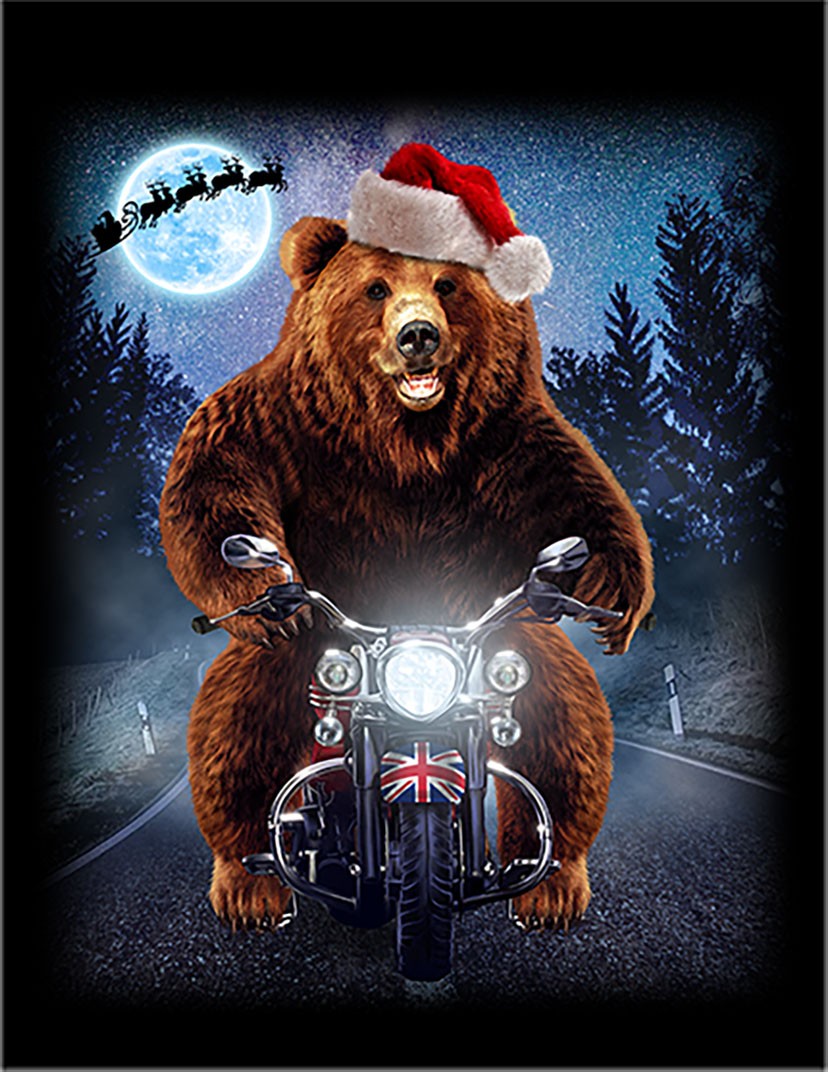 【グリズリーベア・クマ・熊・クリスマス・サンタクロース】ポストカード 黒背景